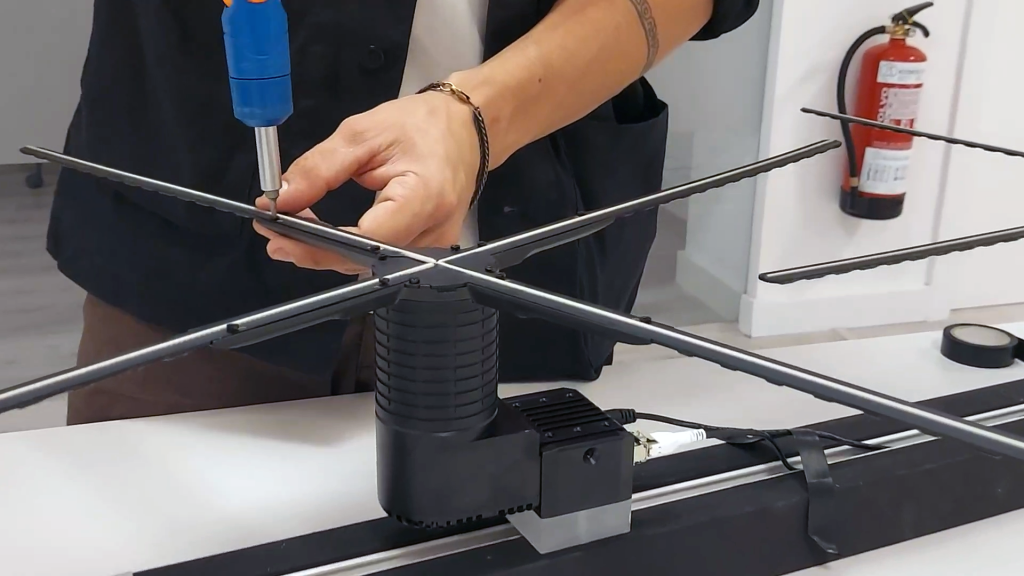 • Custom Aspiral Holograms: Implementamos estructuras holográficas con formas de hélices (“aspas”) personalizadas en gran formato, capturando la atención desde cualquier punto del auditorio.
